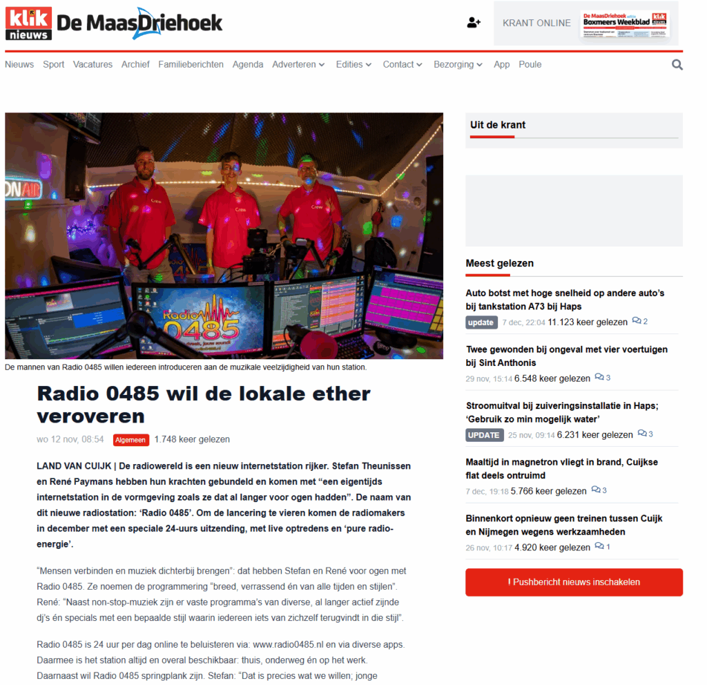 Hier onder een overzicht van artikelen waarmee Radio 0485 in de media is verschenen